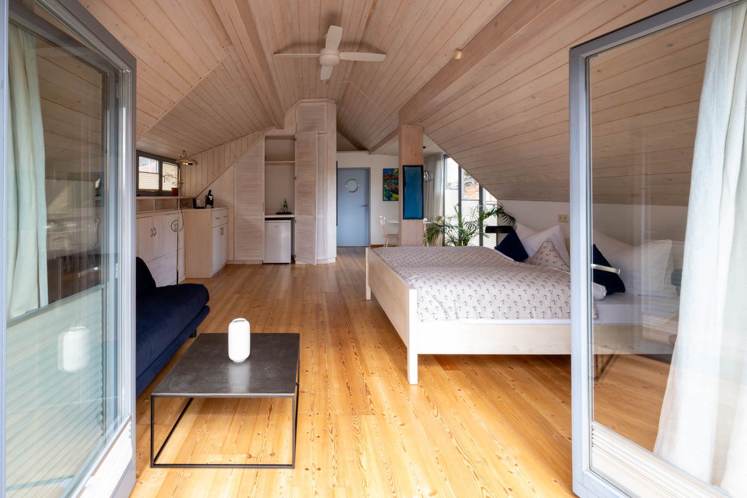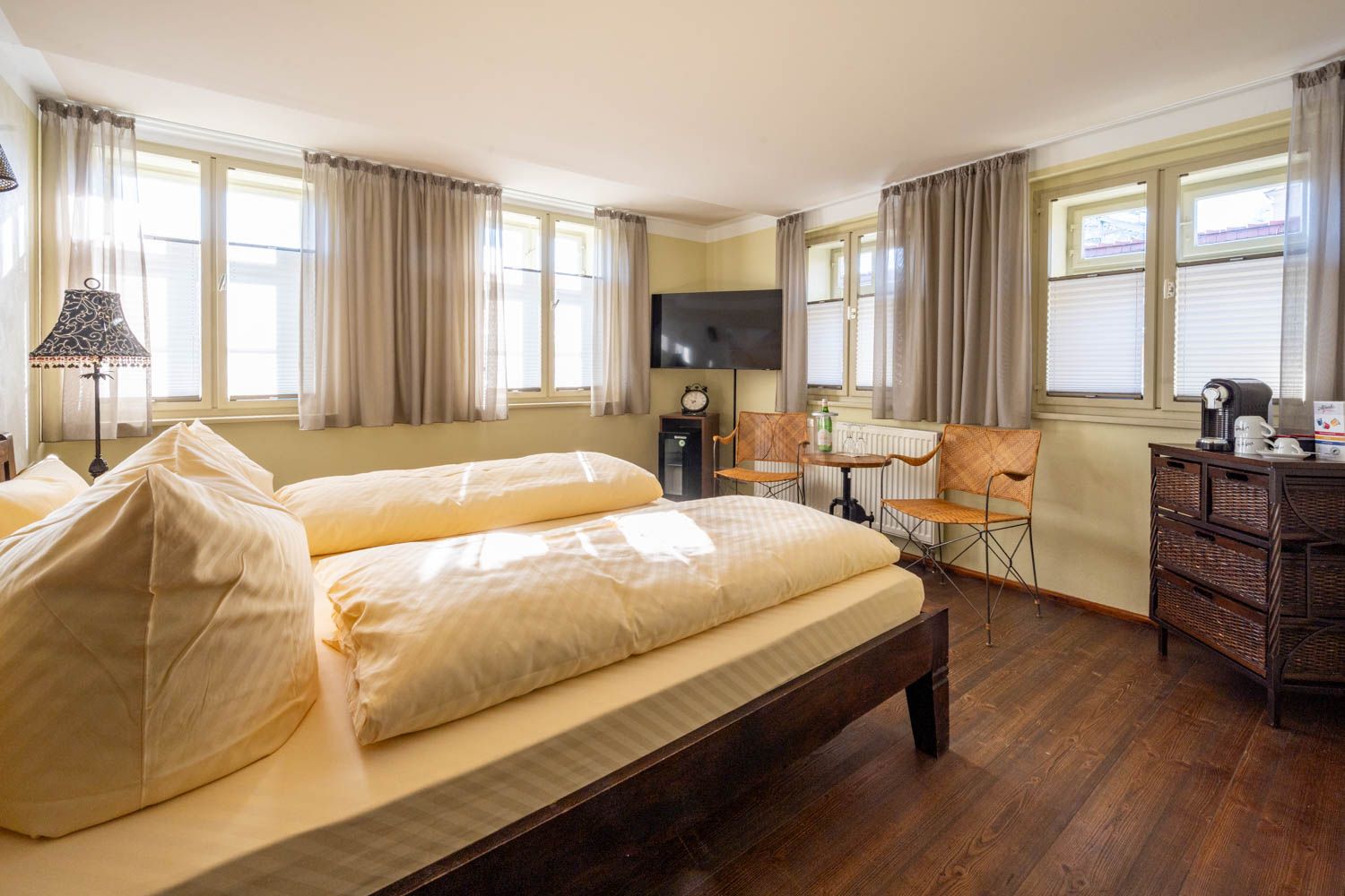 Wenige Schritte vom historischen Haupthaus entfernt bietet der moderne Neubau des Alten Fährguts drei stilvolle Zimmer mit klarer Linienführung und zeitgemäßem Komfort. Hier genießen Sie eine ruhige Lage, kurze Wege zum Haupthaus und die Verbindung aus moderner Architektur und der besonderen Lage im historischen Ortskern von Dresden Loschwitz.